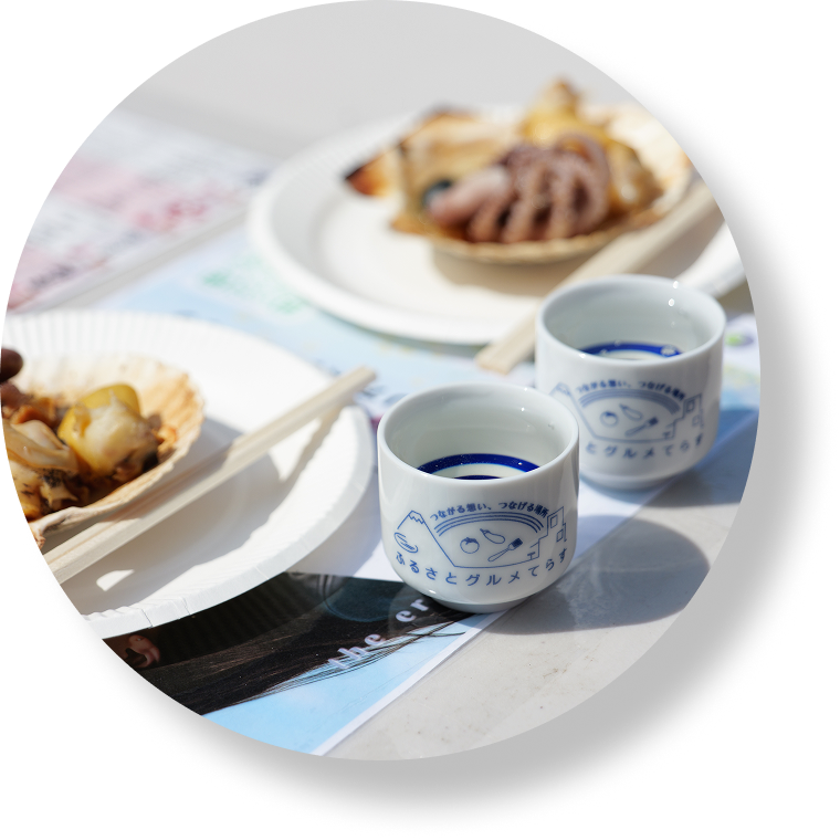 「ふるさとグルメてらす」は、東京の中でもゆっくりとした空気が流れる場所で、首都圏では取扱いの少ない地酒と、ライブキッチンで作られるご当地グルメをお楽しみいただけるイベントです。